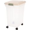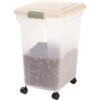 The IRIS Premium Airtight Pet Food Storage Container is the perfect solution to store dry pet food. The airtight sealed storage container locks in freshness and keeps moisture, humidity, and pests out. The snap-tight latch confirms that the lid is shut tight, while the wide lid offers easy access for scooping dry pet food. The plastic food container features a translucent body to quickly check content levels. This rolling container can be also used as a charcoal container or wood chip storage. Made in the USA. Entire Unit: 18.5 x 13.6 x 22.9 Inches and Inside: 15.75 x 12.25 x 19 Inches.